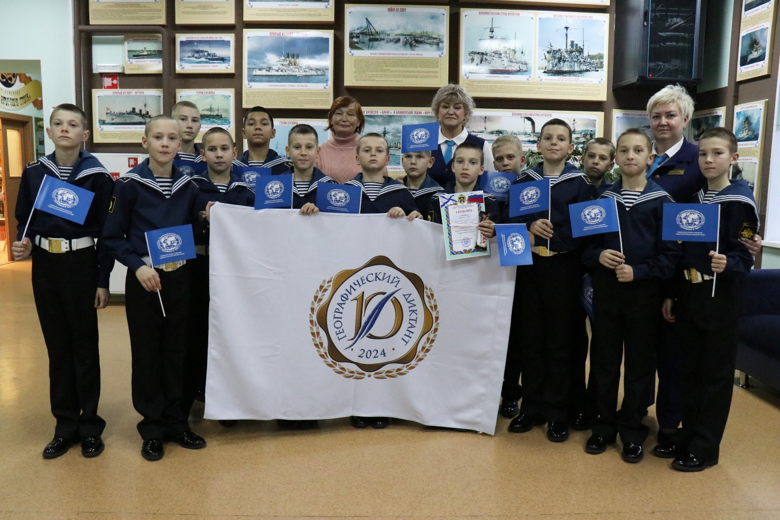 13 декабря в филиале Нахимовского военно-морского училища в г. Владивостоке в рамках мероприятий, посвященных ежегодной международной просветительской акции «Географический диктант» и 140-летию со дня образования Общества изучения Амурского края состоялась встреча воспитанников училища, членов «Клуба юных путешественников и мореплавателей» с членом Приморского краевого отделения Русского географического общества – ОИАК, заведующей архивом Общества Мариной Бакшеевой.