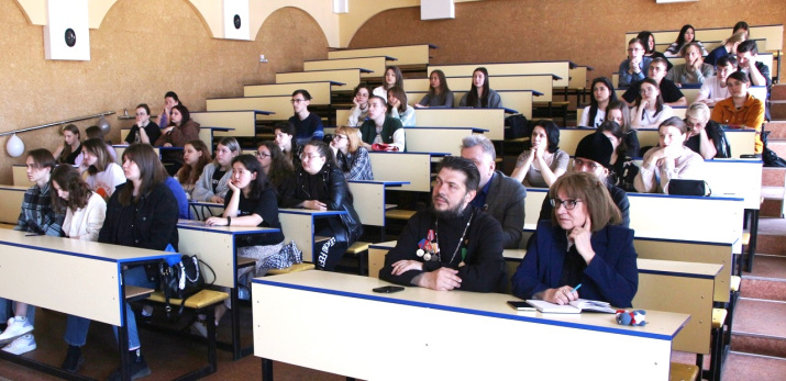 Программу встречи, организованной в формате урока мужества, открыл замечательный фильм об установке мемориальной плиты на вершине имени Героя Российской Федерации Веры Даниловны Волошиной. Материалы фильма были дополнены фотопрезентацией по итогам «походных» сезонов 2019–2023 годов. На большом экране все присутствующие могли увидеть гордые мемориалы Героев-кузбассовцев – М.М. Куюкова, В.А. Гнедина, С.Х. Марковцева, М.Г. Хорькова и В.Д. Волошиной. Александр Волобуев выступил перед аудиторией, рассказав о целях и задачах проекта, достигнутых результатах, ближайших планах. Сезон 2024 года – все встречи, занятия, уроки мужества, исторические изыскания и организационные мероприятия посвящены одному – увековечению имени Героя Советского Союза, кемеровчанина, нашего земляка Юрия Михайловича Двужильного. К плите, которая будет поднята на вершину его имени руками неравнодушных потомков воинов-победителей, можно было прикоснуться по завершении встречи, – ощутить вес ноши, что уже совсем скоро ляжет на плечи волонтеров проекта.