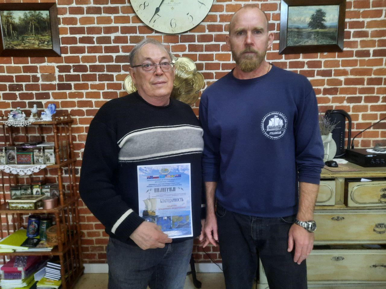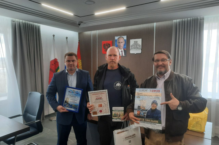 Сергей Синельник, в свою очередь вручил Благодарственные письма за радушное гостеприимство на Задонской земле от Фонда кругосветных экспедиций, который путешественник возглавляет, главе Задонского Муниципального района Алексею Щедрову и Владимиру Щедрину - собственнику Купеческой усадьбы г. Задонска, в которой путешественник отдыхал вместе с супругой Мариной во время пребывания на Задонской земле.