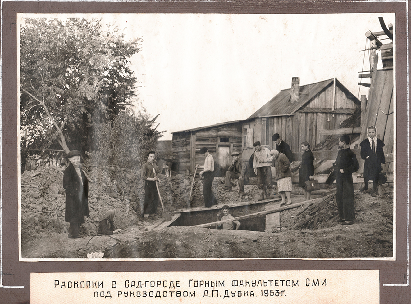 А.П. Дубок (сидит) на раскопках. 1953 г.