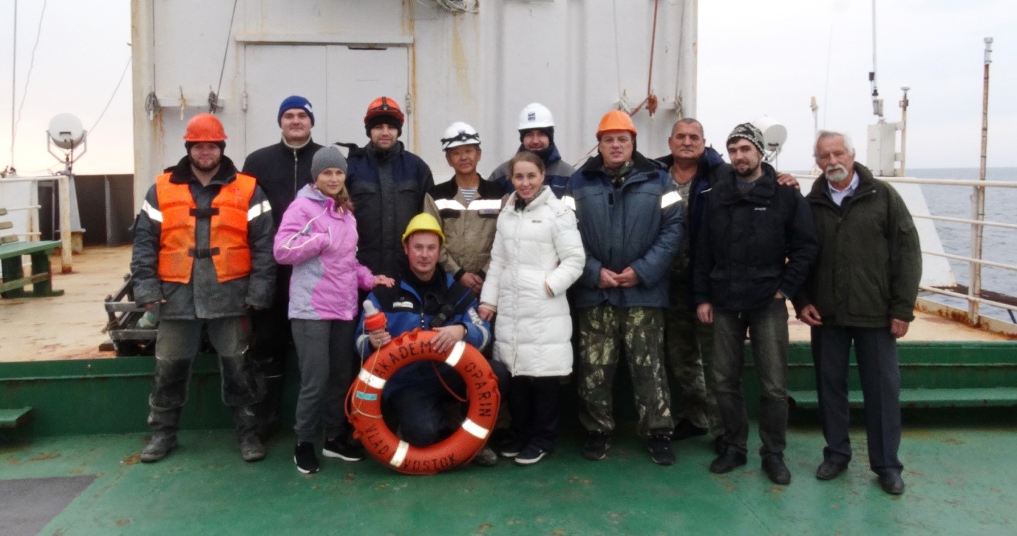 Научный состав геолого-геофизической экспедиции ТОИ ДВО РАН, 54 рейс НИС "Академик М.А. Опарин"