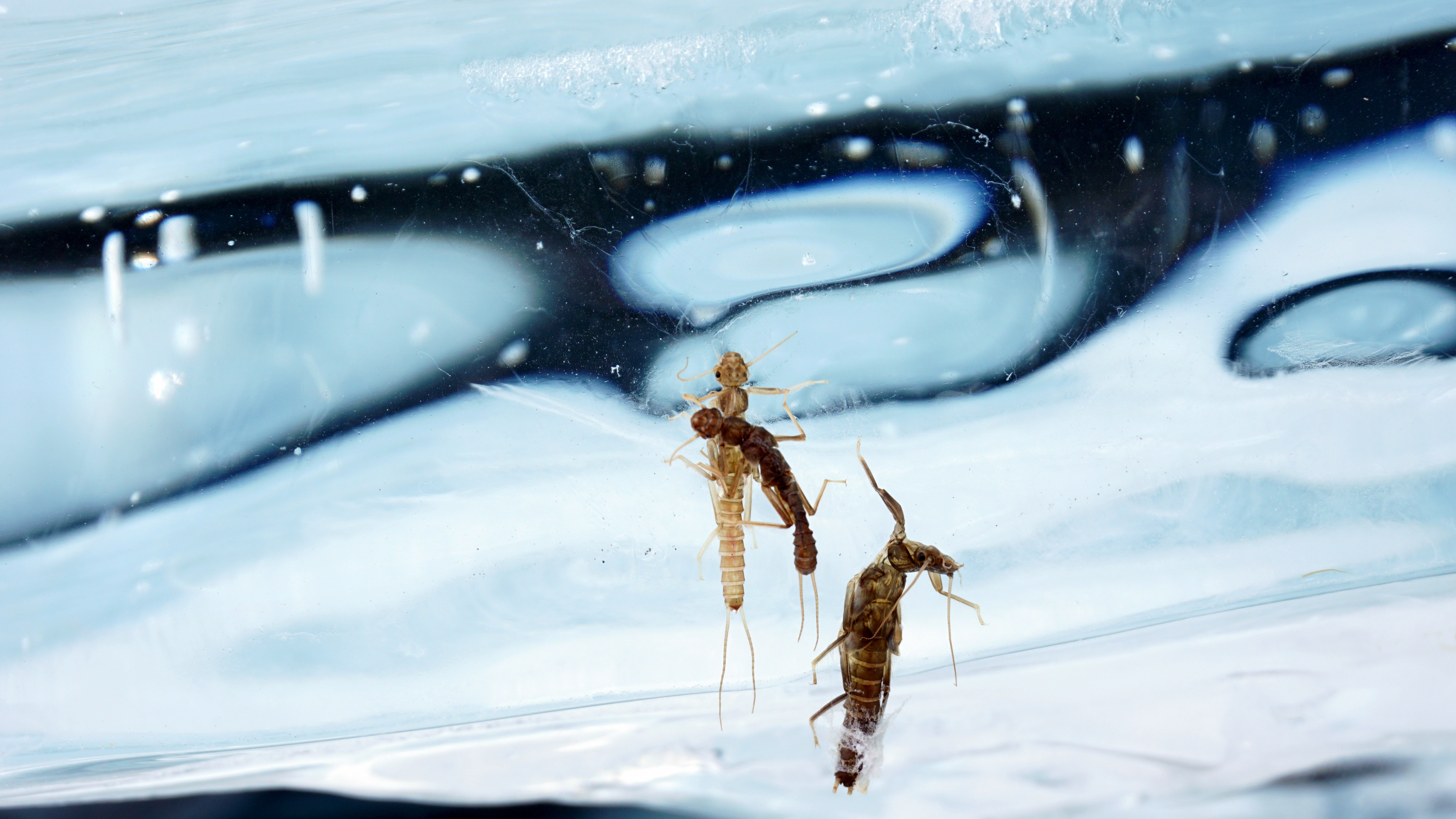 Вмерзшие в лед личинки веснянки. Фото автора