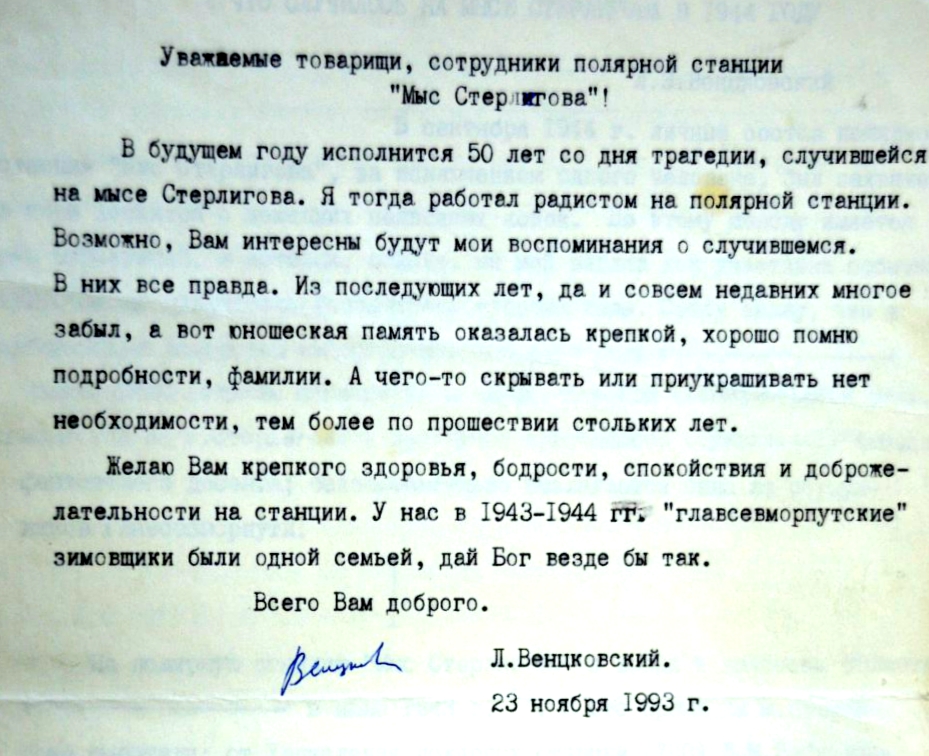 Письмо Л. Венцковского