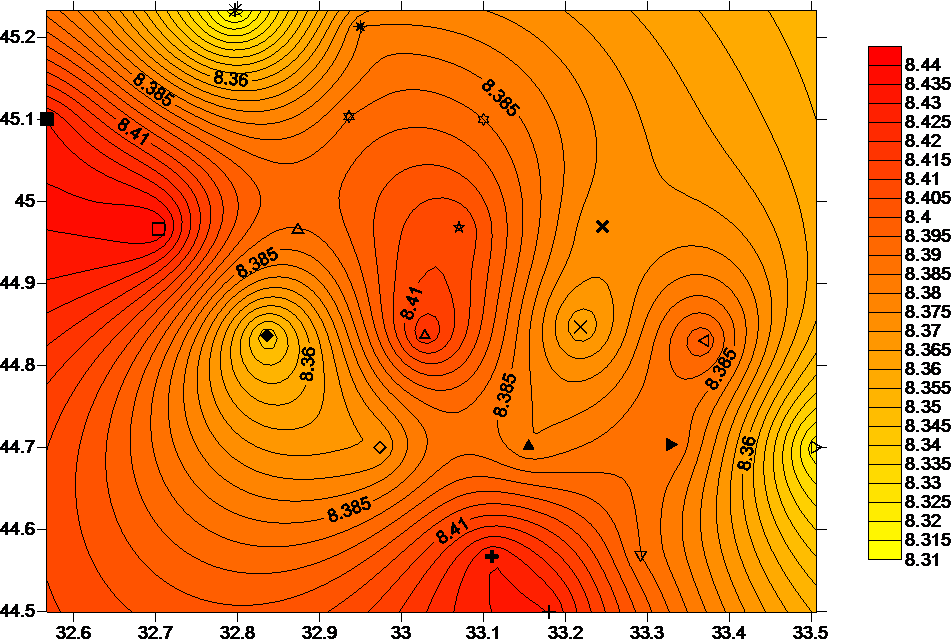 Рис. 3.2. Подход судна к станции и снос судна во время измерений.