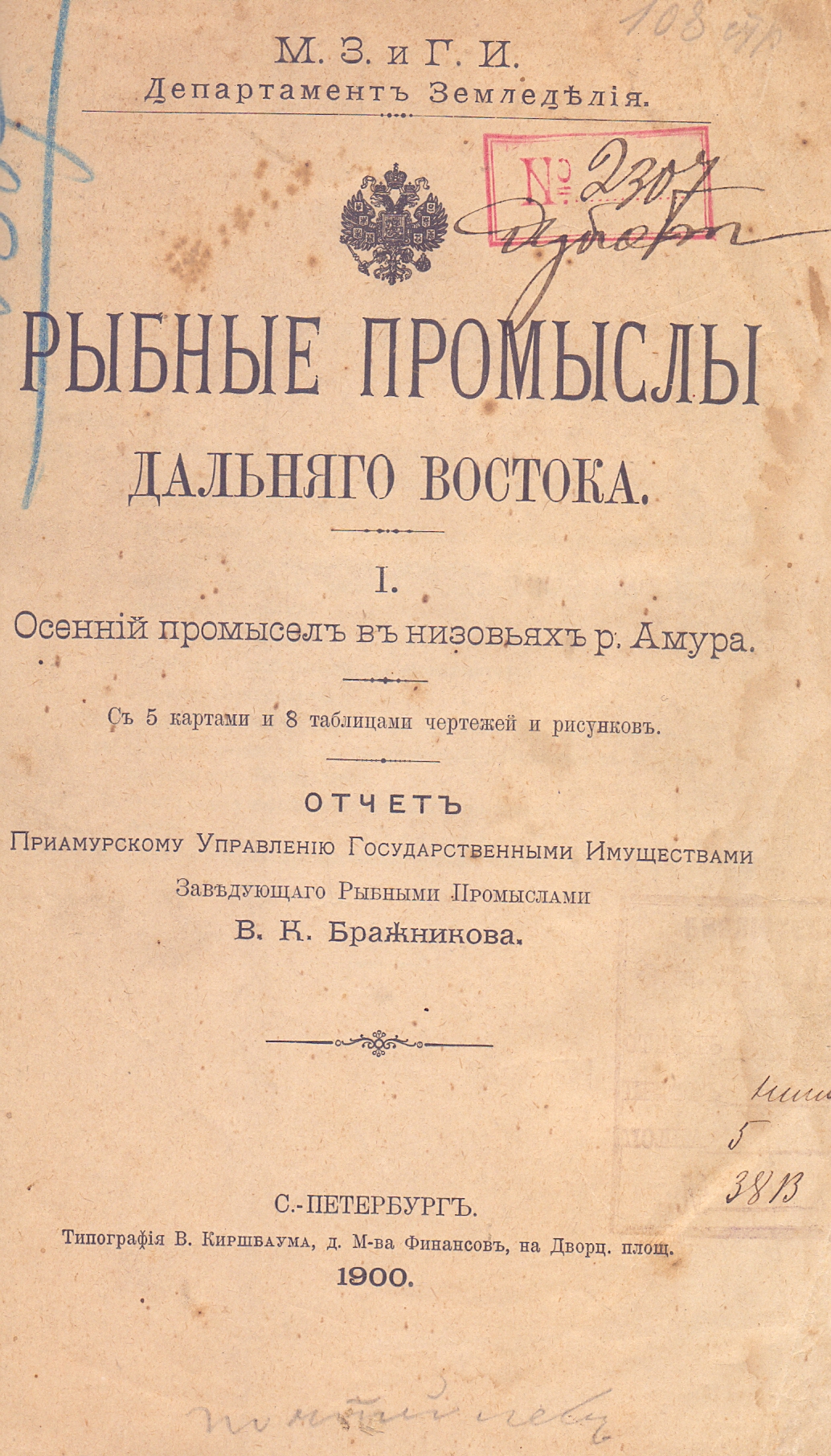 Бражников В.К. Рыбные промыслы Дальнего Востока. I. Осенний промысел в низовьях р. Амура: Отчет Приамурскому управлению государств. имуществами. (Б-ка ОИАК. № 2307. Дар автора)