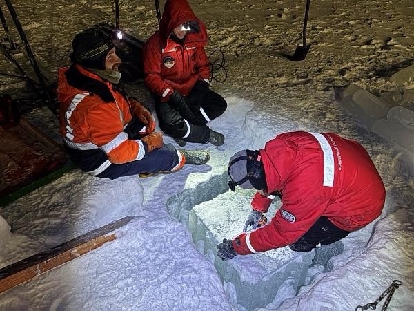 Добыча "керна" льда для дальнейших исследований. Фото:Олег Стрибный.