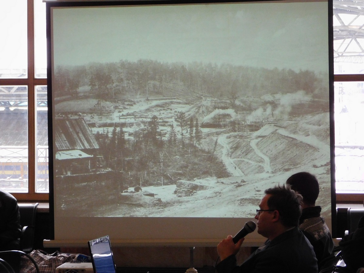 директора Музея истории Красноярской железной дороги Константин Карпухин читает лекцию об истории Транссиба
