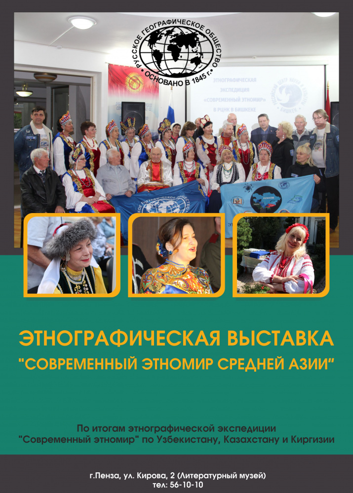 Приглашаем в Литературный музей (г.Пенза, ул.Кирова, 2) посетить этнографическую выставку «Современный этномир Средней Азии» по итогам экспедиции Русского географического общества «Современный этномир» по Узбекистану, Казахстану и Киргизии!