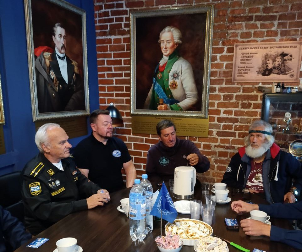 В штаб-квартире Костромского областного отделения Русского географического общества мореплаватели Евгений Ковалевский и Станислав Березкин рассказали костромичам о своем кругосветном походе. Фото 13 октября 2024г.