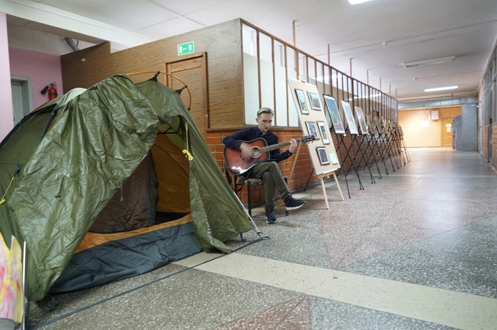 Собравшиеся участники диктанта перед его началом могли познакомиться с несколькими выставками, отражающими девиз мероприятия, связанный с путешествиями и экспедициями. Экспозиции подготовлены студентами и сотрудниками факультета под руководством аспиранта Александра Крячкова и старшего преподавателя Марии Деревягиной. Среди них: «Сдувая пыль с ретро-техники…» (выставка фото- и топогеодезического оборудования середины ХХ века), «Старое и новое в атласном картографировании» (коллекция атласов из фондов факультета географии, геоэкологии и туризма), «Случайные моменты. Фрагменты учебных практик» (фотовыставка студентов факультета), инсталляция «У палатки». Особое внимание обратила на себя художественная арт-выставка аспирантки Евгении Широковой, подготовленная по мотивам ее путешествий.