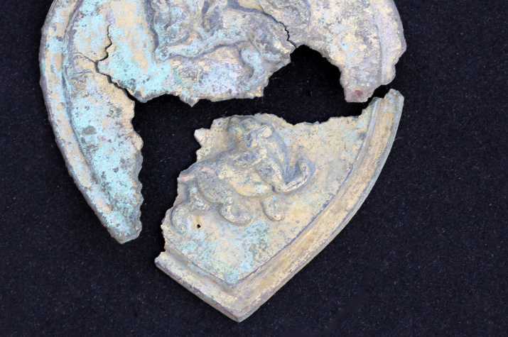 Фрагмент позолоченной бляшки